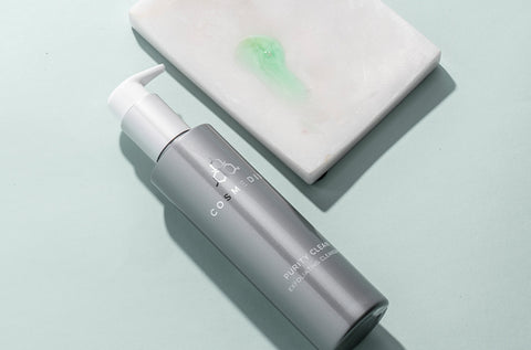 "First, Grant starts by massaging COSMEDIX Purity Clean Exfoliating Cleanser onto her skin in circular motions. 'I like this because it has 5 percent lactic acid and peppermint oil,' she says, before removing the cleanser with a warm, damp cloth. These ingredients work together to exfoliate dead skin cells while calming the skin."